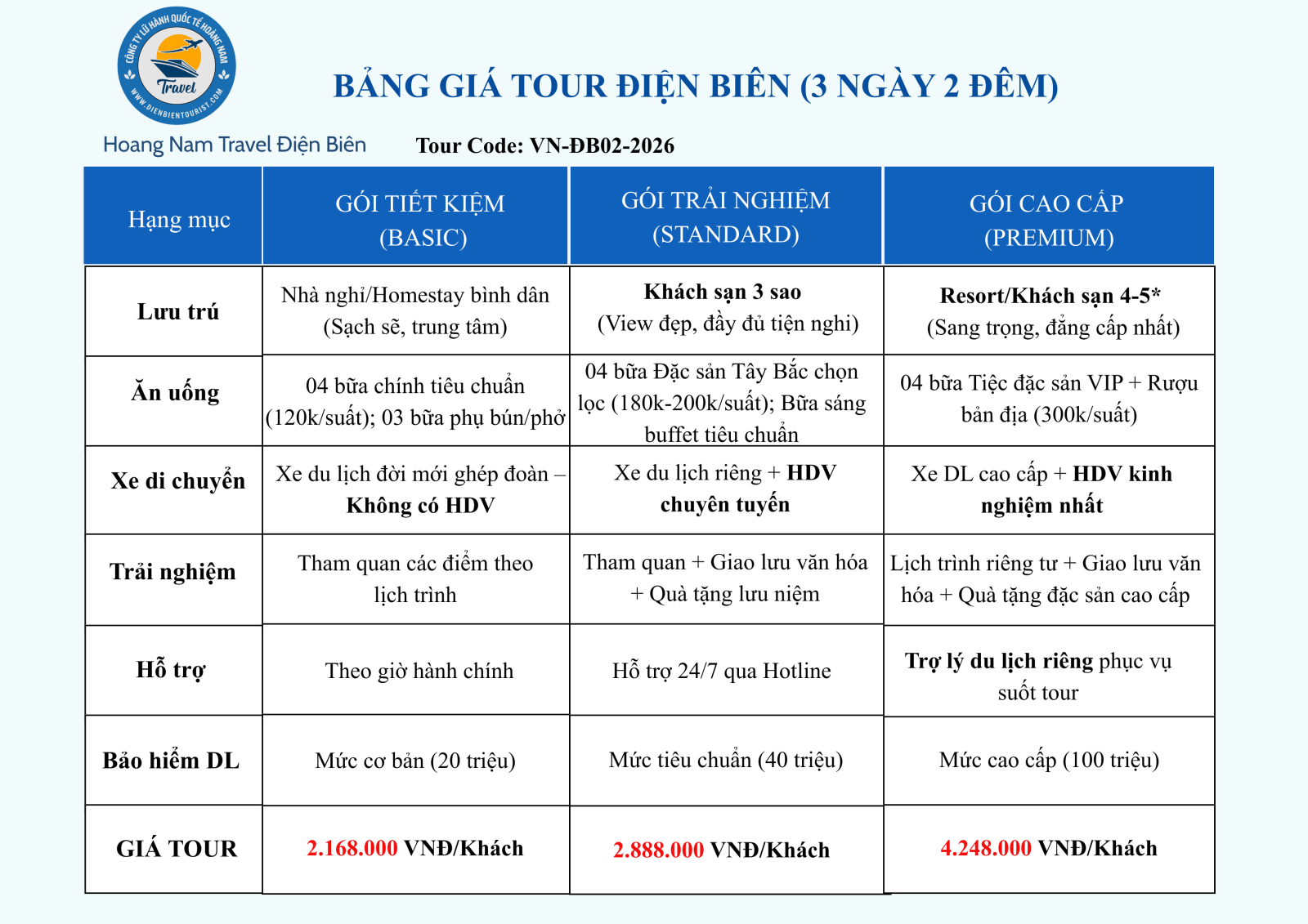 1. Tour Điện Biên 3N2Đ bao gồm những gì?